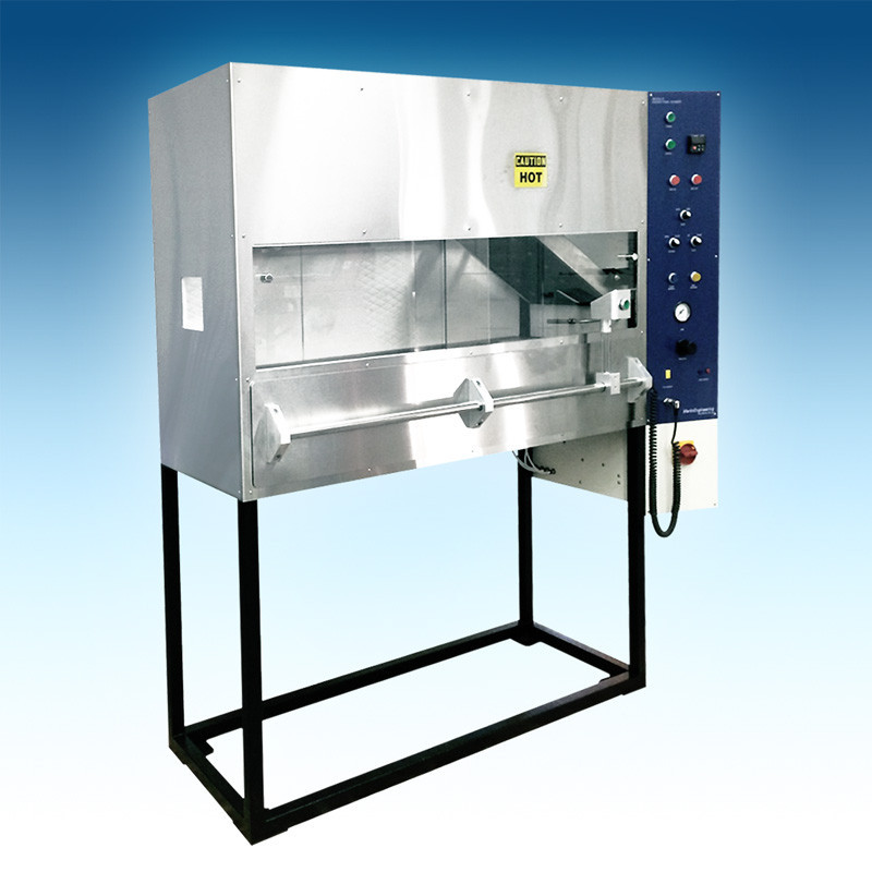 - রেডিয়েন্ট প্যানেল টেস্ট চেম্বারটি স্টেইনলেস স্টিলের তৈরি এবং অভ্যন্তরীণ 0.5-ইঞ্চি অগ্নি প্রতিরোধী বোর্ড সহ। এতে একটি কাঁচের দেখার উইন্ডো, একটি অভ্যন্তরীণ চিমনি এবং স্লাইডিং টেবিল রয়েছে।